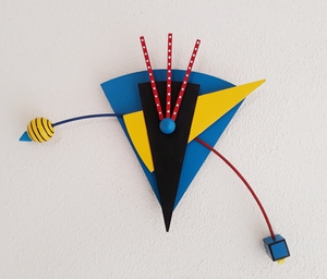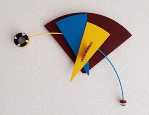 2011Wandobject van hout, ijzer en kunststof.