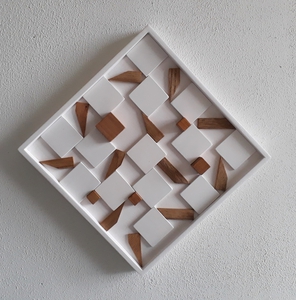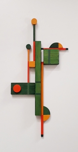 2023Wandobject van hout en met acrylverf beschilderd.